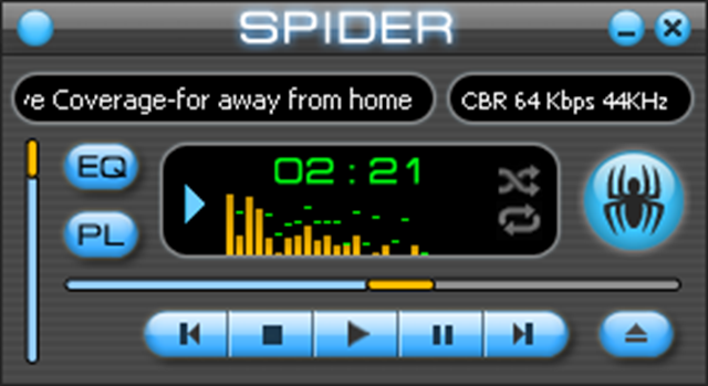 Spider是一个免费且小巧易用的音乐播放器。支持抓取CD单轨和音频格式转换。它具备与Winamp类似的音频均衡器,也支持ID3和WMA标签编辑,歌词编辑等等。
